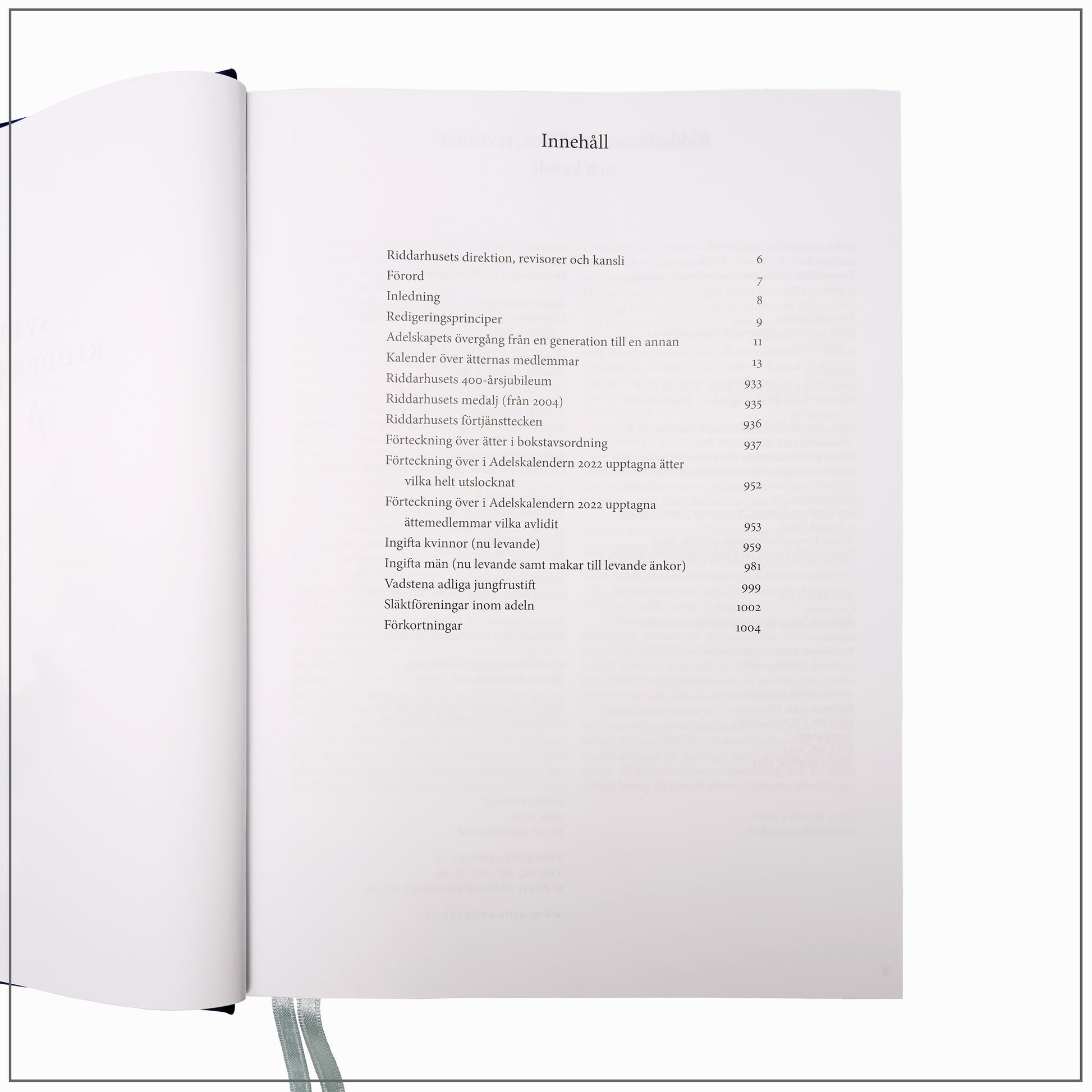 Sveriges Ridderskap och Adels kalender publicerades första gången 1854. Den 110:e utgåvan redovisar traditionsenligt ättemedlemmar av den nu levande svenska adeln. Adelskalendern 2025 är en jubileumsutgåva i sammetsband som innefattar ca 1.000 sidor med korta historiska ingresser, personbestånd, fullständiga vapen i färg samt en gedigen registerdel.
